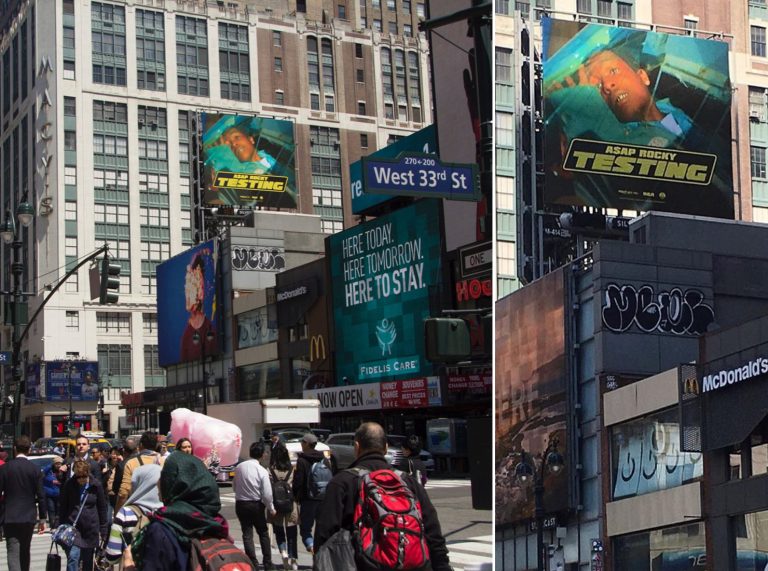 a$ap Rocky aurait il enfin dévoilé la cover de Testing ? C’est ce que laisse penser ce billboard au coeur de New York. Pas besoin