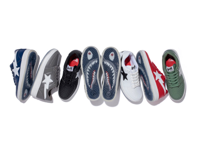 Bape a de nouveaux de grandes ambitions pour sa ligne footwear que la marque japonaise décline dans une nouvelle collection Bapesta Shark Outsole. La Bapesta
