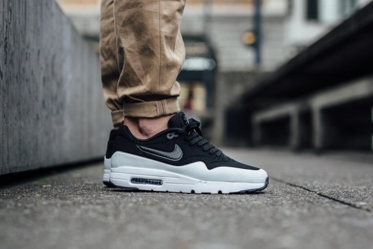 Beaucoup d’Air Max 1 ont eu pour coloris le noir et blanc mais pas encore sur la Nike Air Max 1 Ultra Moire, enfin presque…